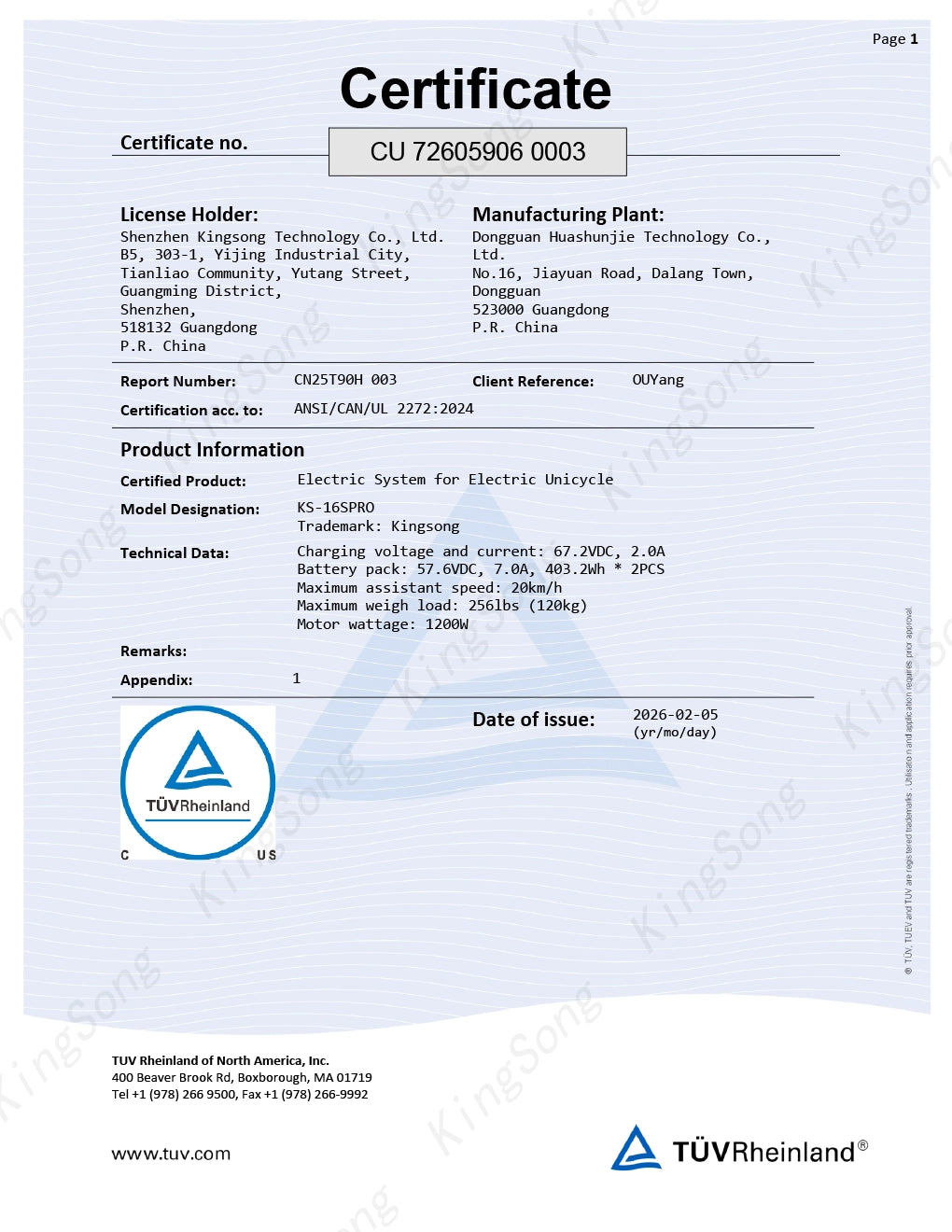 KingSong 16S Pro/3800W Motor/840wh battery capacity/Smart BMS/80 km Range/UL 2272 Certified